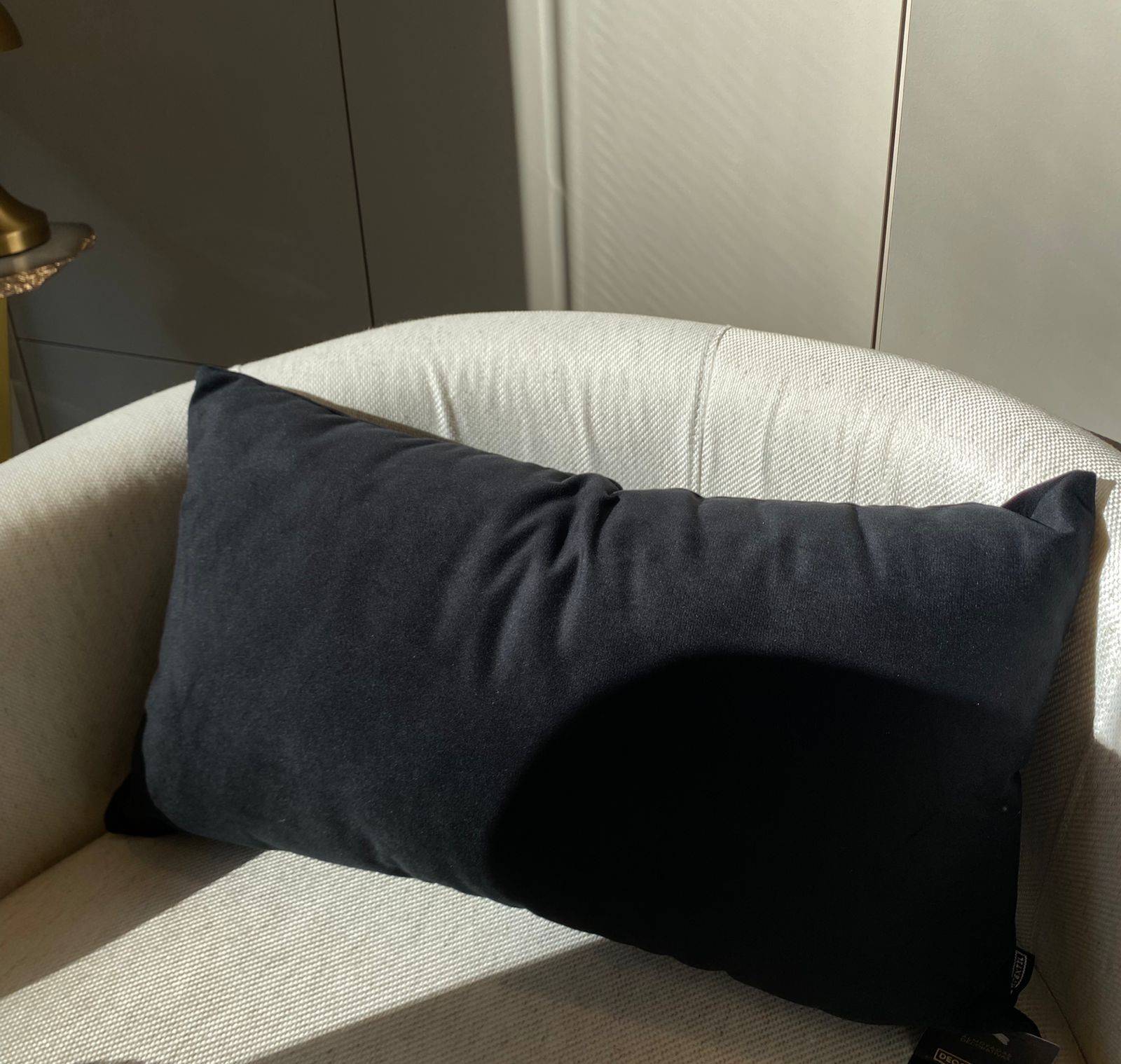 Almofada retangular em veludo, na cor preto.