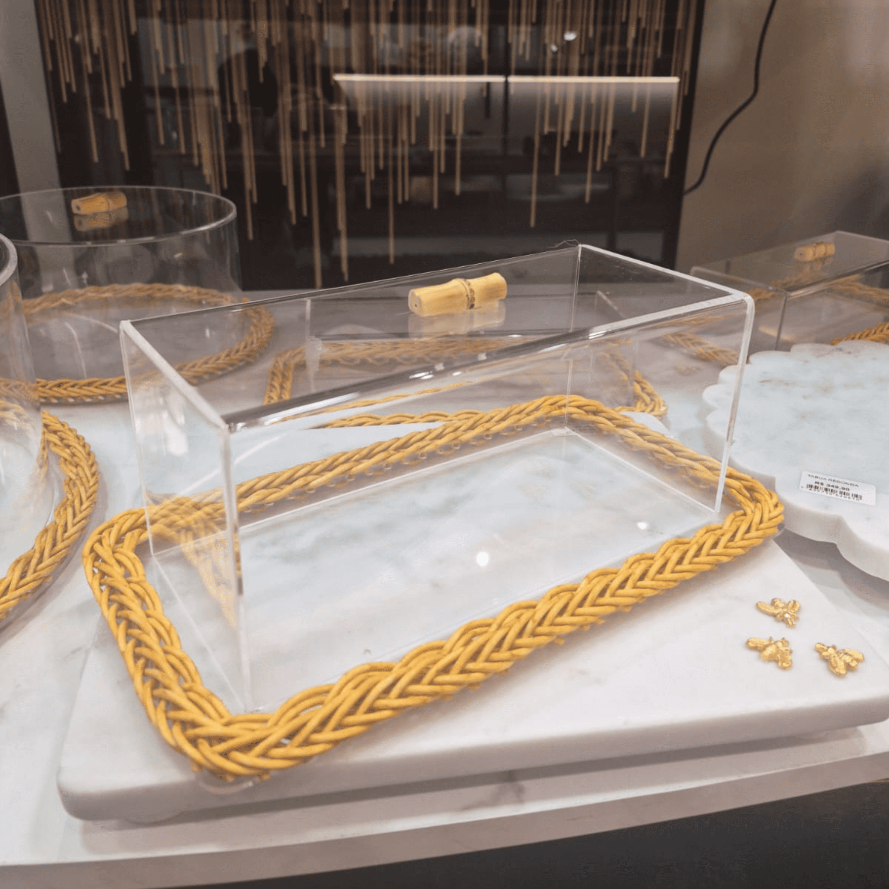 Composta por uma cúpula em acrílico transparente e uma base resistente em fibra sintética, a boleira protege os alimentos enquanto permite uma visualização completa. A combinação dos materiais garante leveza e durabilidade, além de um acabamento harmonioso que se adapta a diversos estilos de decoração.