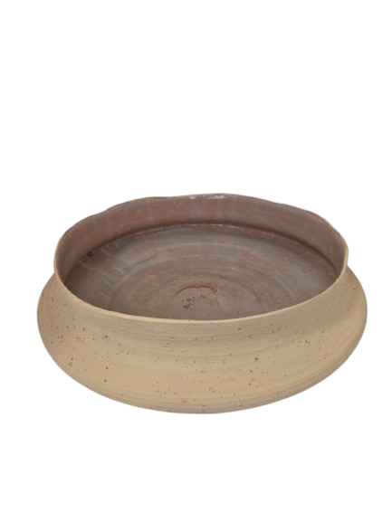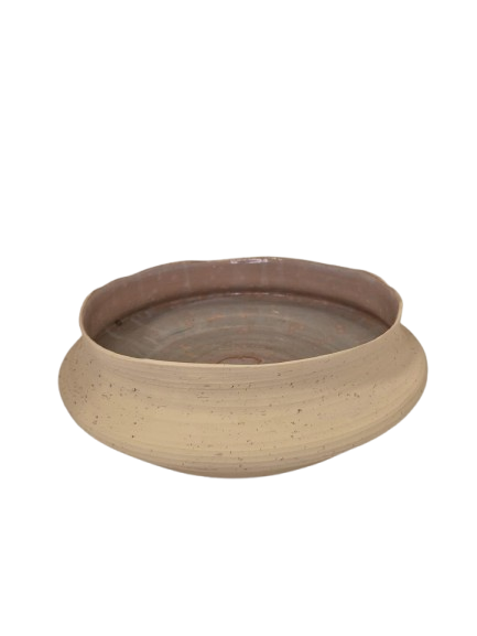 Centro de mesa rústico feito em cerâmica, na cor bege.