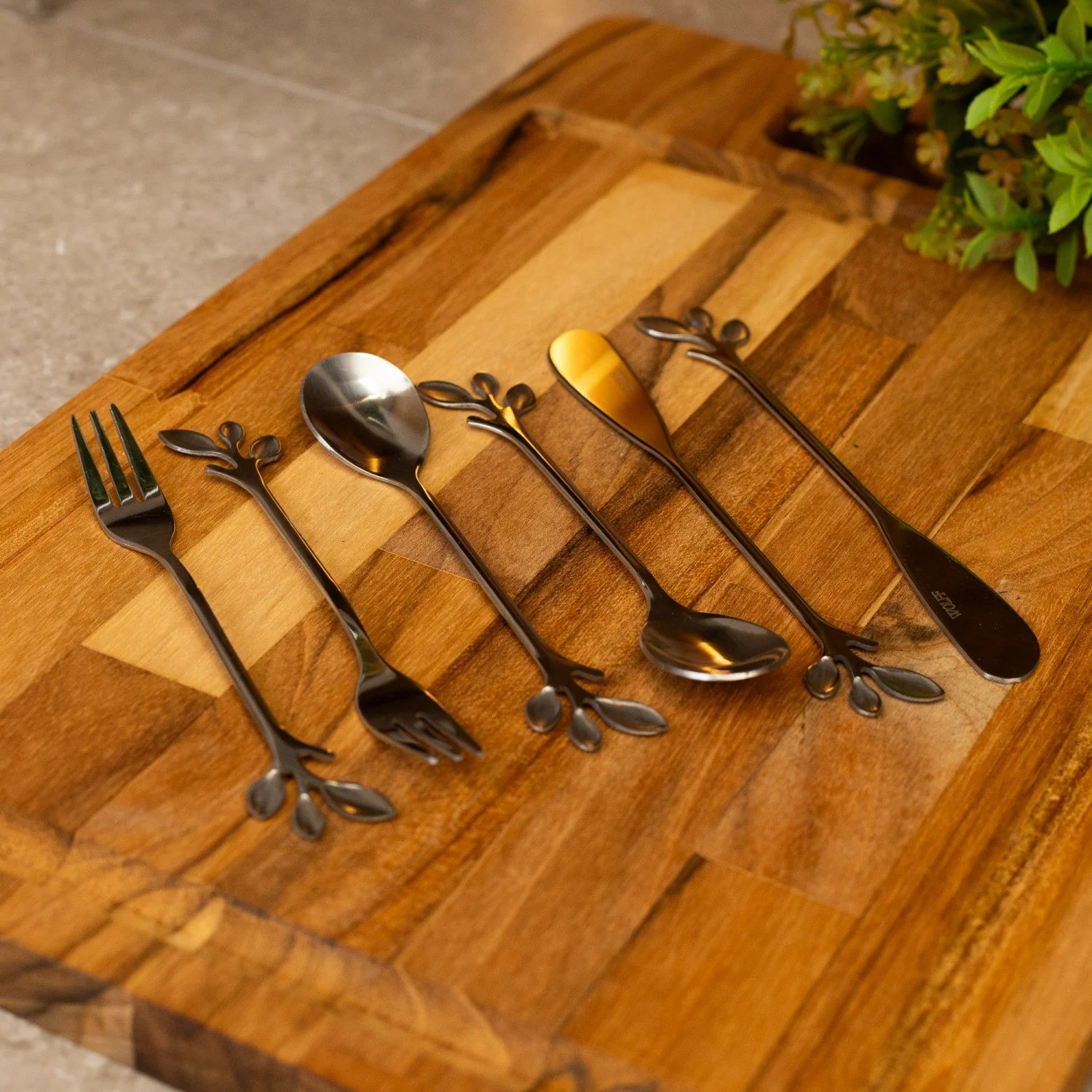 Conjunto de talheres feito em aço inox prata. Contém 6 unidades.