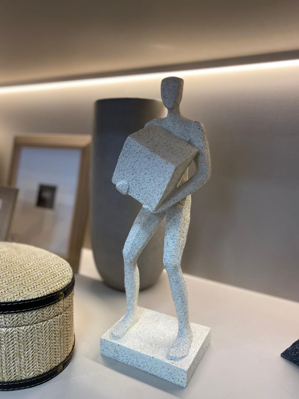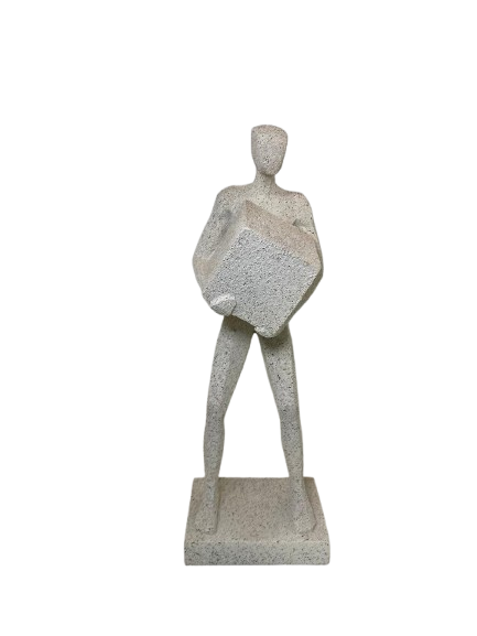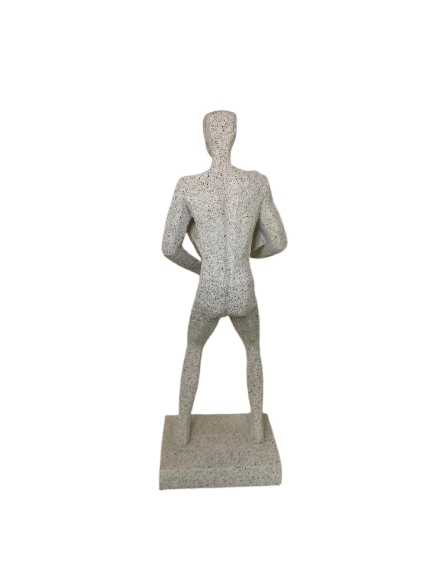 Escultura homem feita em resina, na cor branca com efeito off stone.
