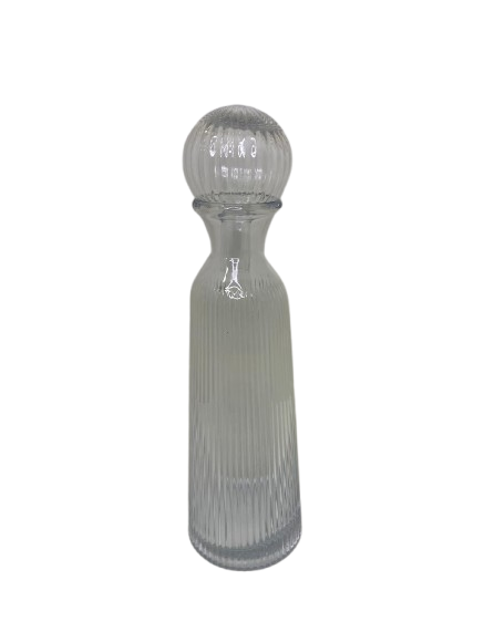 Licoreira feita em vidro incolor, com detalhe canelado.