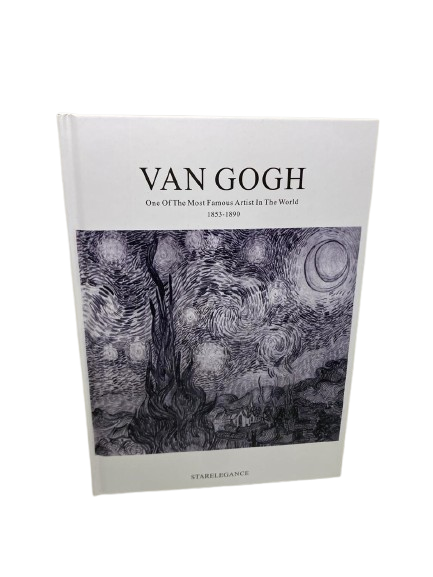 Livro decorativo Van Gogh, com imagens ilustrativas de ambientes decorados.