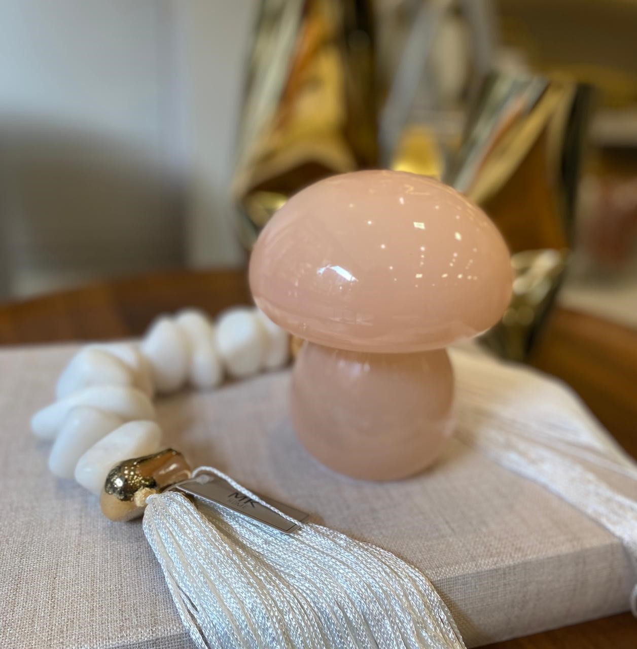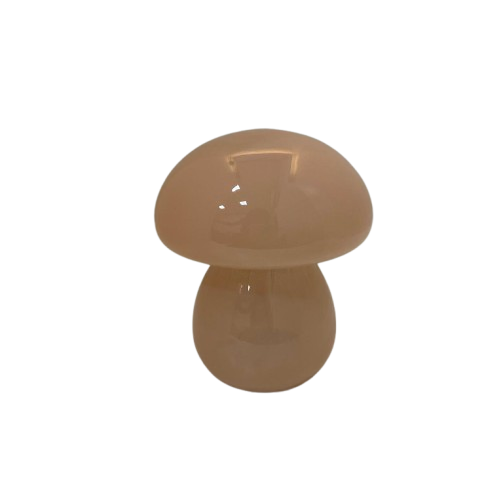 Luminária feita em vidro na cor rose, formato cogumelo, para acender necessita de pilha.