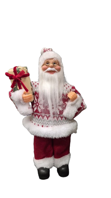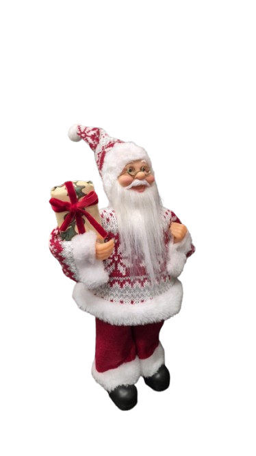 Papai Noel decorativo vermelho e branco, tecido e plastico.