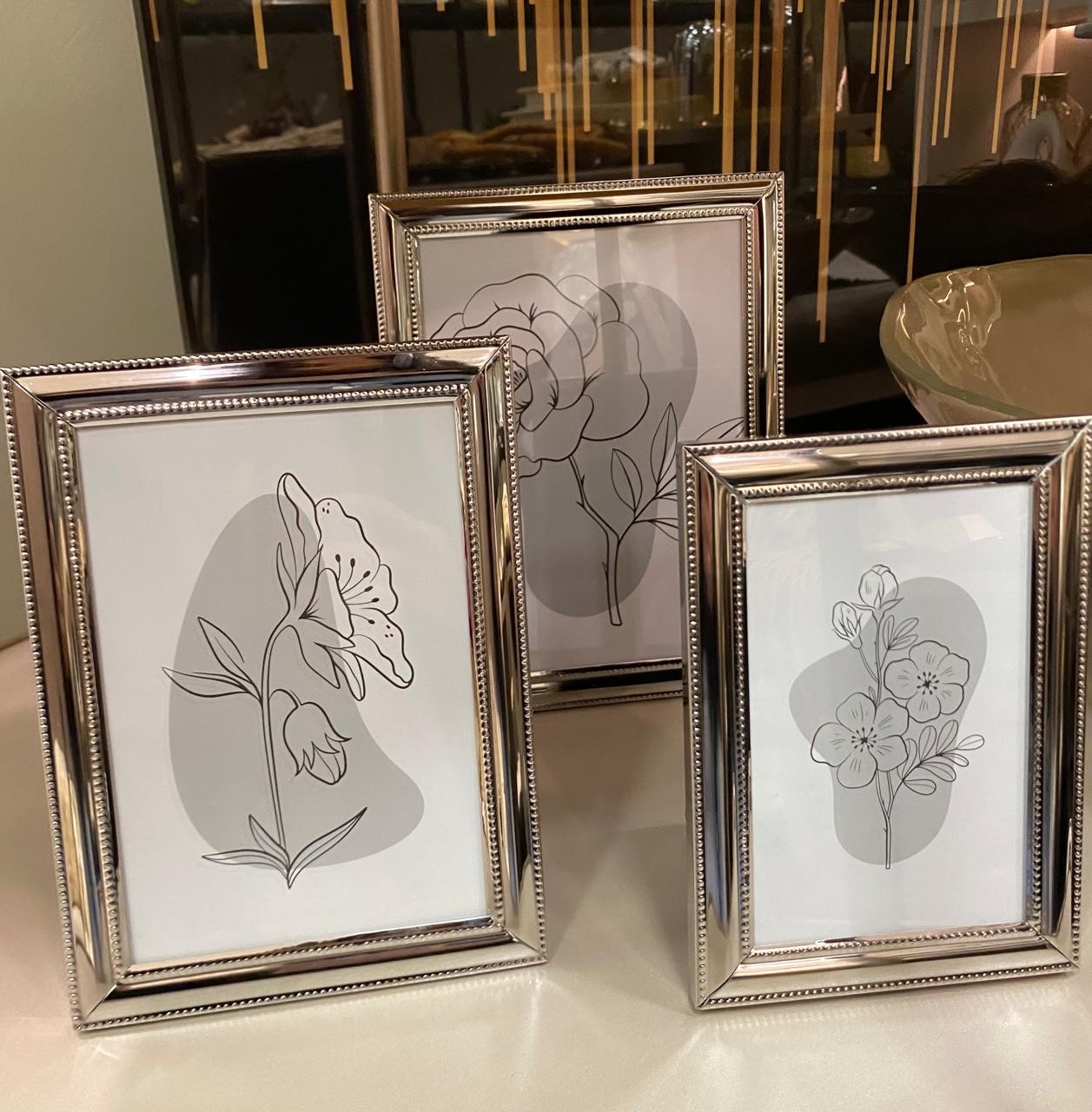 Porta retratro feito em madeira, e a borda em metal prata. Foto: 13×18