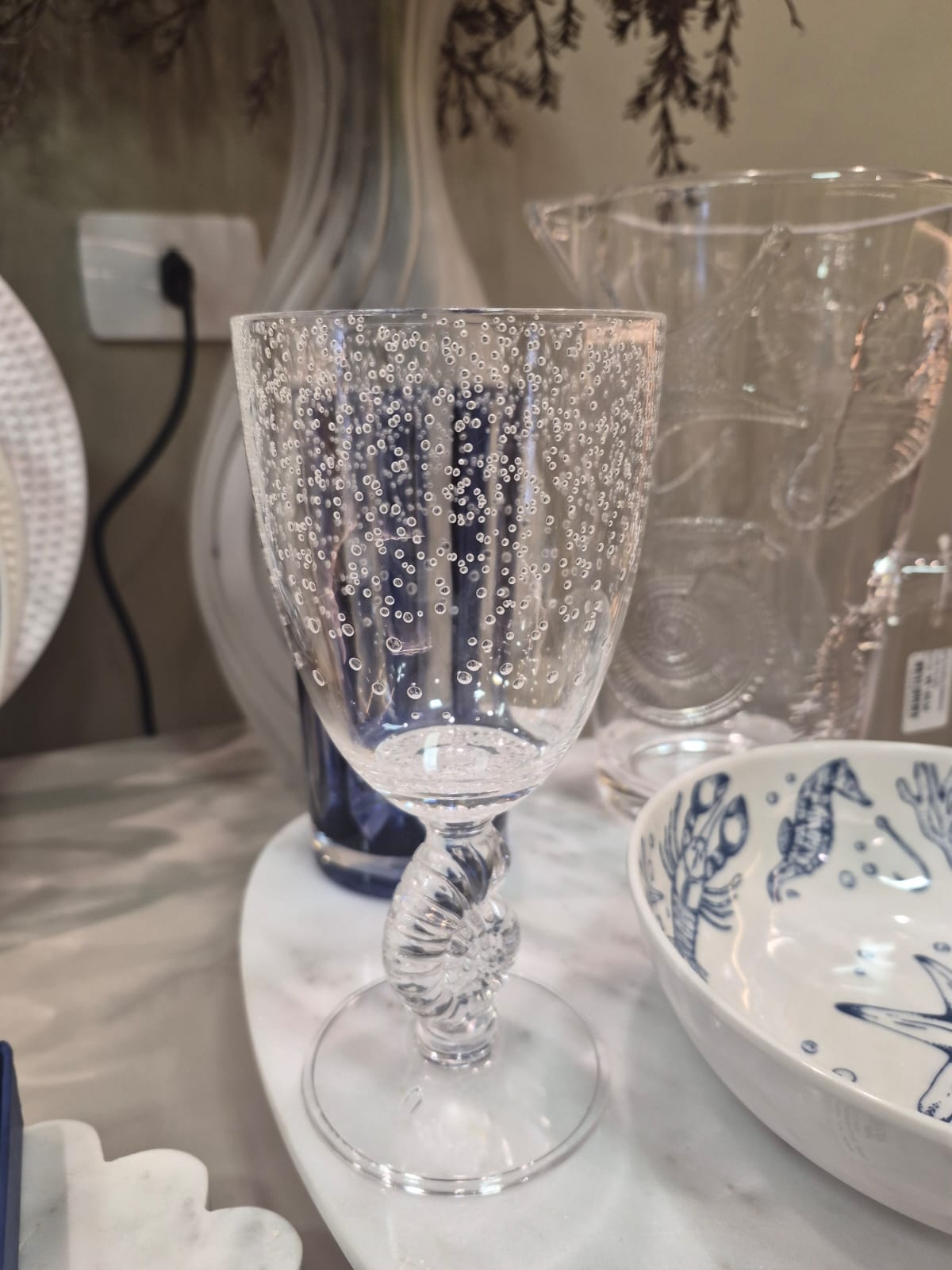 A Taça em Acrílico com Concha e Bolhas é uma peça delicada e encantadora que traz o charme do fundo do mar para a sua mesa. Com design leve e sofisticado, ela combina transparência e detalhes que criam um visual único e refrescante.