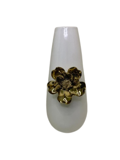 Vaso feito em cerâmica na cor branco, com detalhes de flor em dourado.