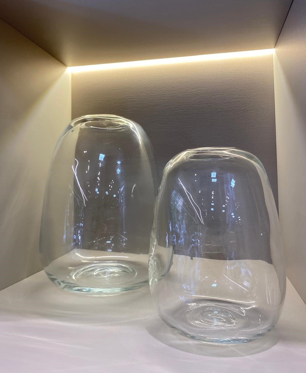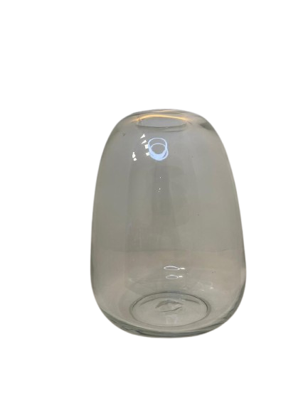 Vaso feito em vidro incolor arredondado.