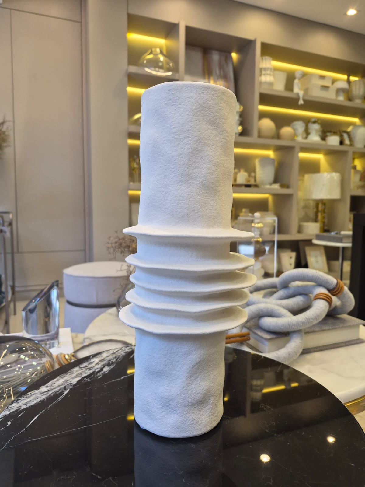 Ideal para compor ambientes sofisticados, o vaso pode ser utilizado tanto com arranjos secos e artificiais quanto como peça decorativa independente. Perfeito para salas de estar, aparadores, mesas de centro, estantes ou escritórios, ele agrega personalidade e um toque contemporâneo ao espaço
