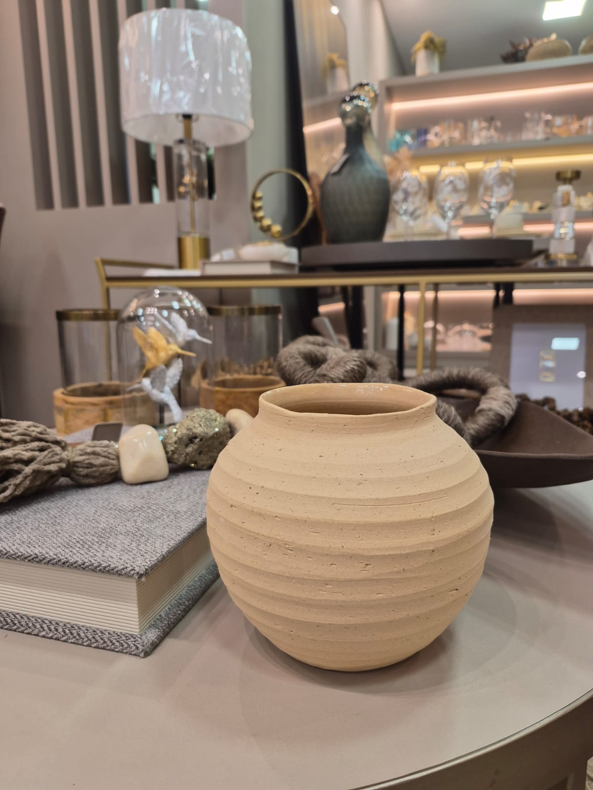 O Vaso Decorativo em Cerâmica Terracota Claro P é uma peça elegante que traz naturalidade e sofisticação ao ambiente. Seu design com linhas suaves e acabamento texturizado valoriza a estética orgânica e contemporânea.