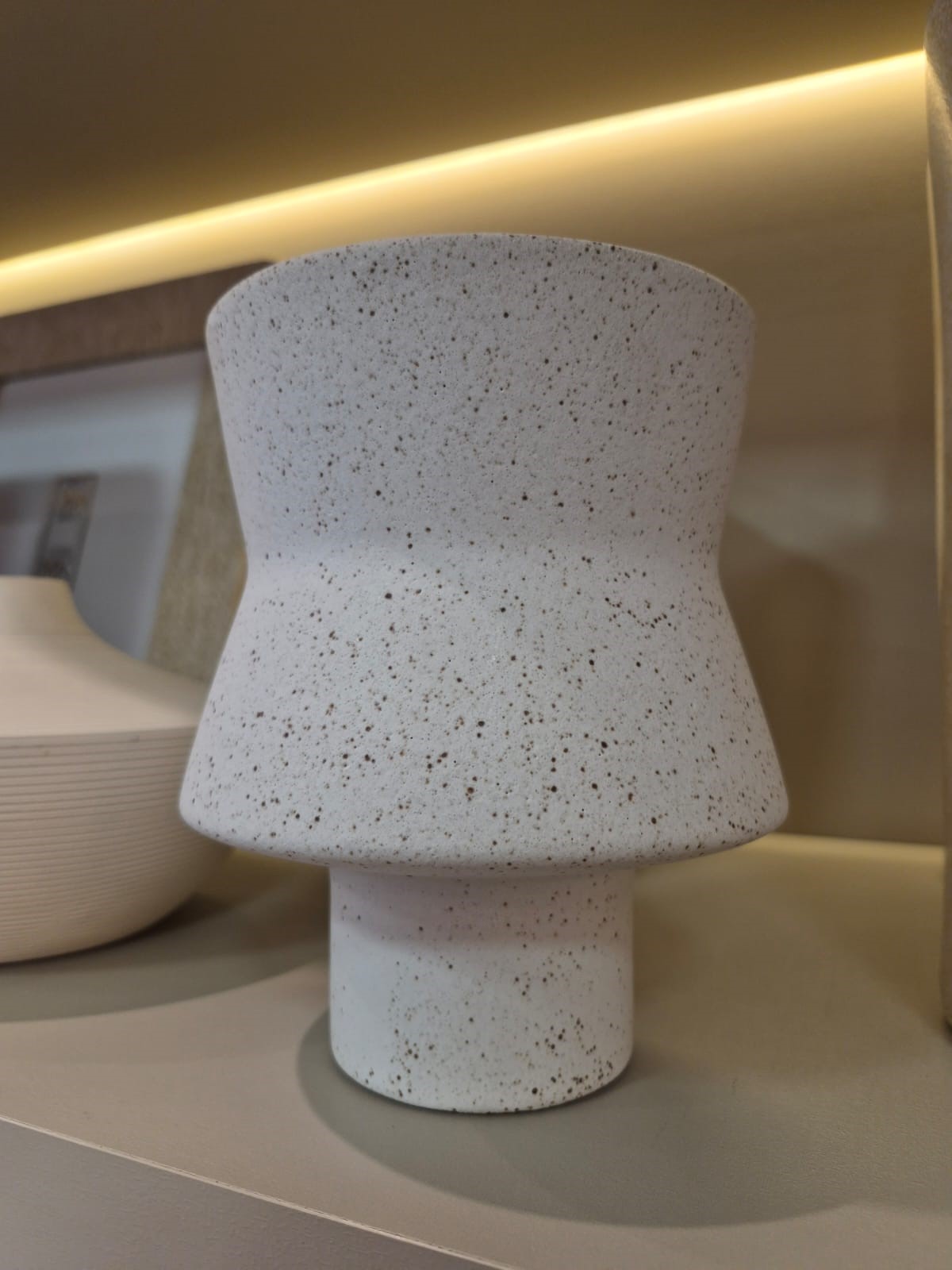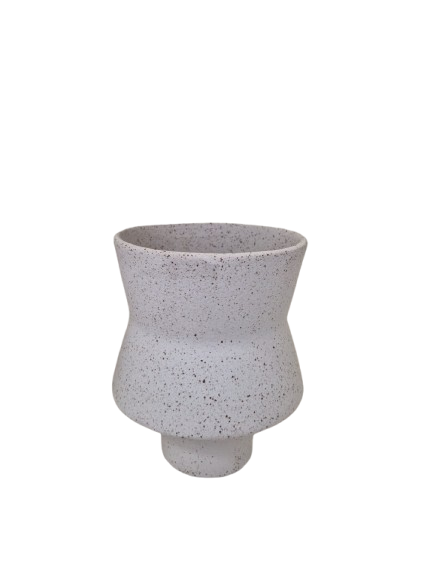 Vaso feito em cerâmica rústica, na cor branco.
