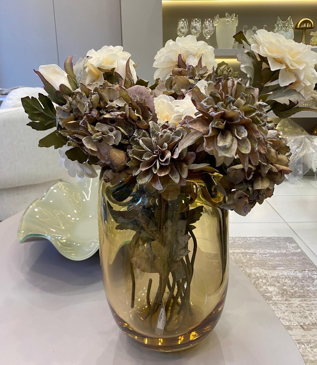 Vaso decorativo em murano ôrganico na cor ambar.