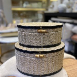 • Caixa Decorativa Oval em Linho e Couro P