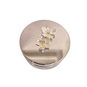 Caixa Decorativa em Metal Prata com Flores