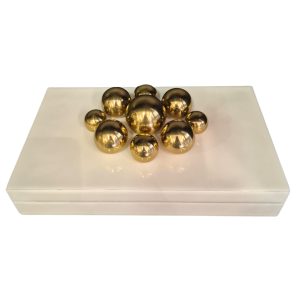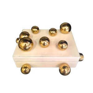 • Caixa Decorativa em Madeira Laqueada Branca com Esferas Douradas P